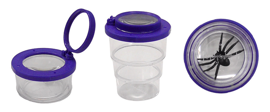 小さな生きものをそっと入れて、ふたのルーペで拡大しましょう。 段々でコンパクトに収納可能。底には目盛も入っています。