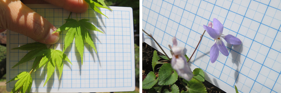 シートの太い線が 1cm四方、点線は5㎜です。 虫や葉っぱなど、さまざまな生きものの大きさを調べてみましょう。
