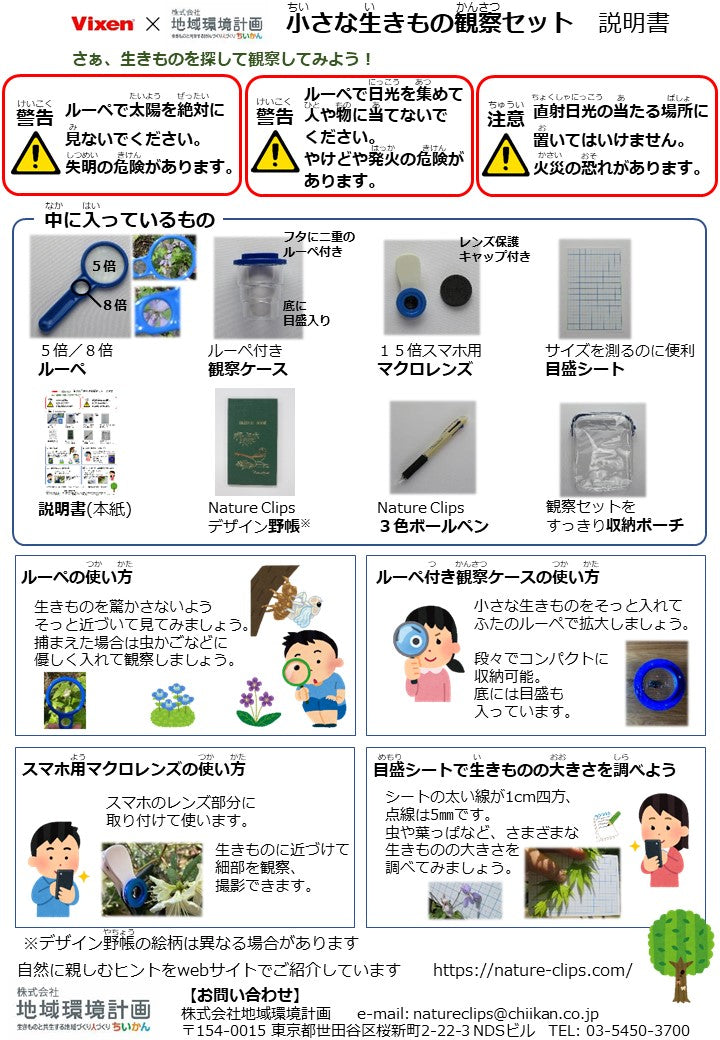 小さな生きもの観察セット デザイン野帳&3色ボールペン付き Vixen×地域環境計画