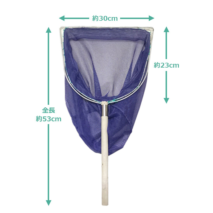 全長は約53cm。柄の長さは約30cmで、たも網の横幅は約30cm、縦は約23cmです。サイズ感もちょうどよく使いやすいアイテムです。
