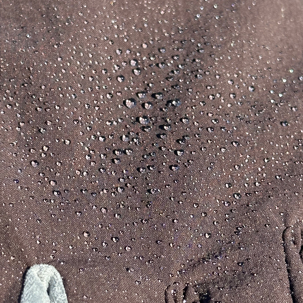 手袋甲の素材には、防水加工が施されたCORDURAを使用しています。手袋についた水滴を拭き取っても、どこが濡れていたかわからないほどの撥水性を持っています。