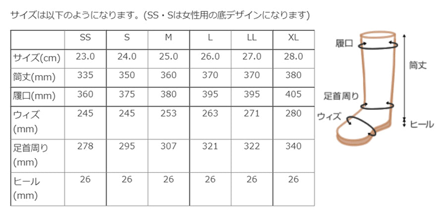 SS、Sサイズは、M~XLで使用しているリップル底よりも少し溝が浅く、ソール形状も異なります。