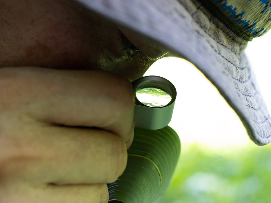 高倍率ルーペとしては大きめの17mm径レンズの採用により、光学性能とのぞきやすさを両立しました。昆虫や草花の観察はもちろん、鉱物や本格的な宝石の鑑定におすすめです。