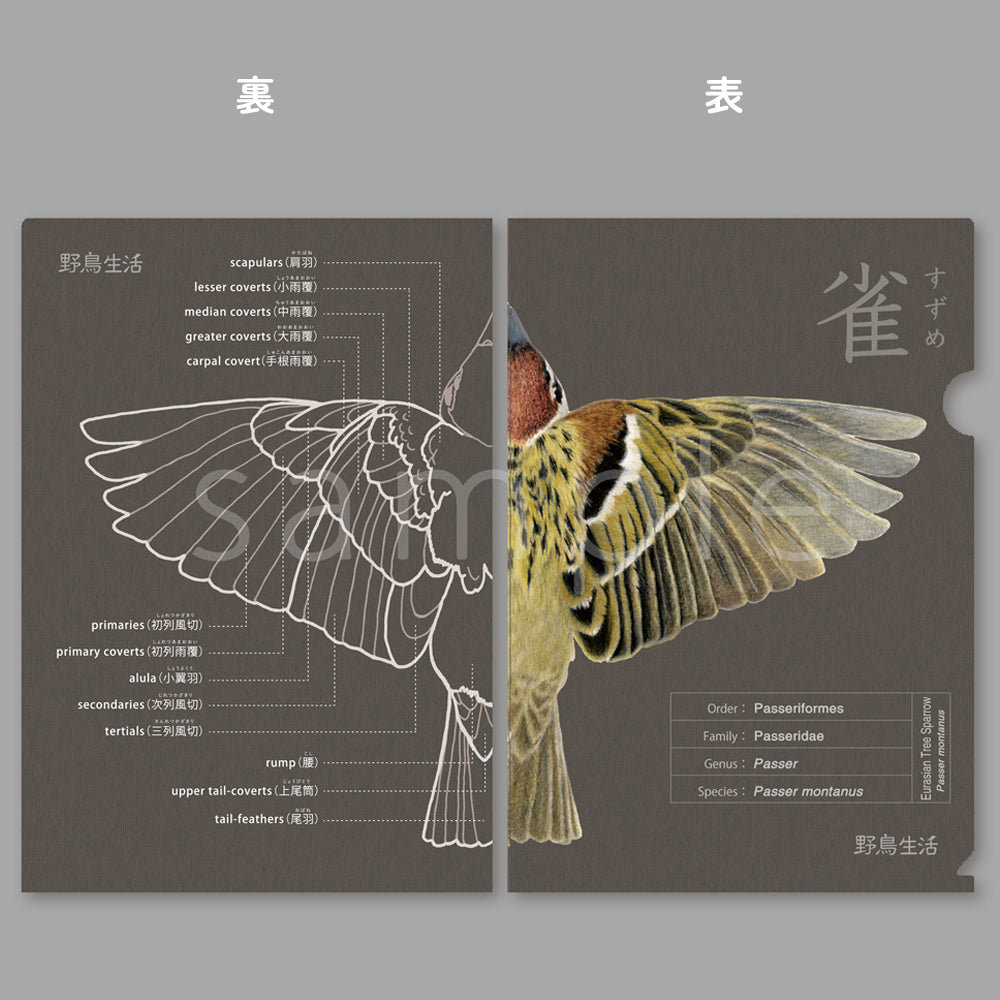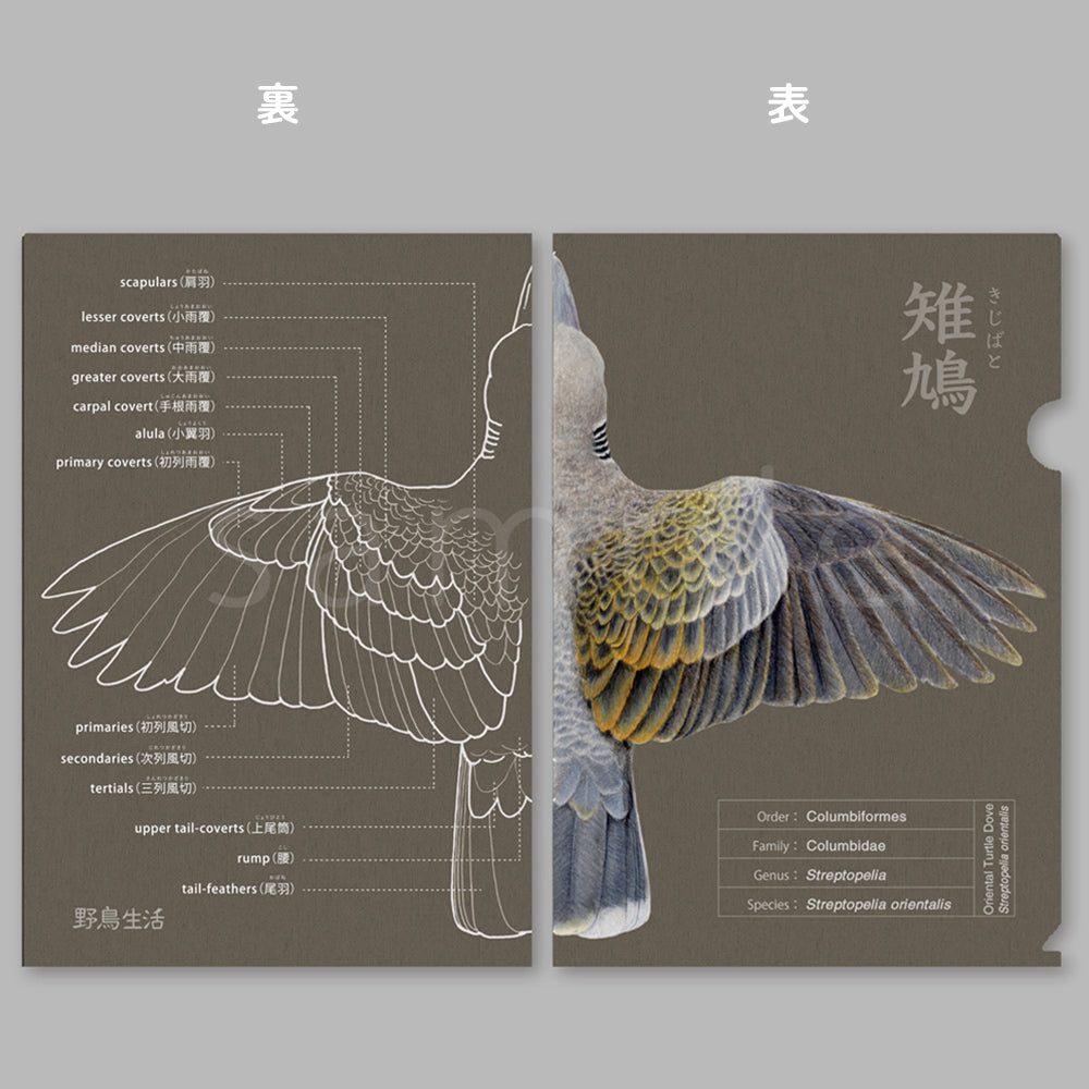 羽の名称を学びながら楽しめるA4サイズのクリアファイル。